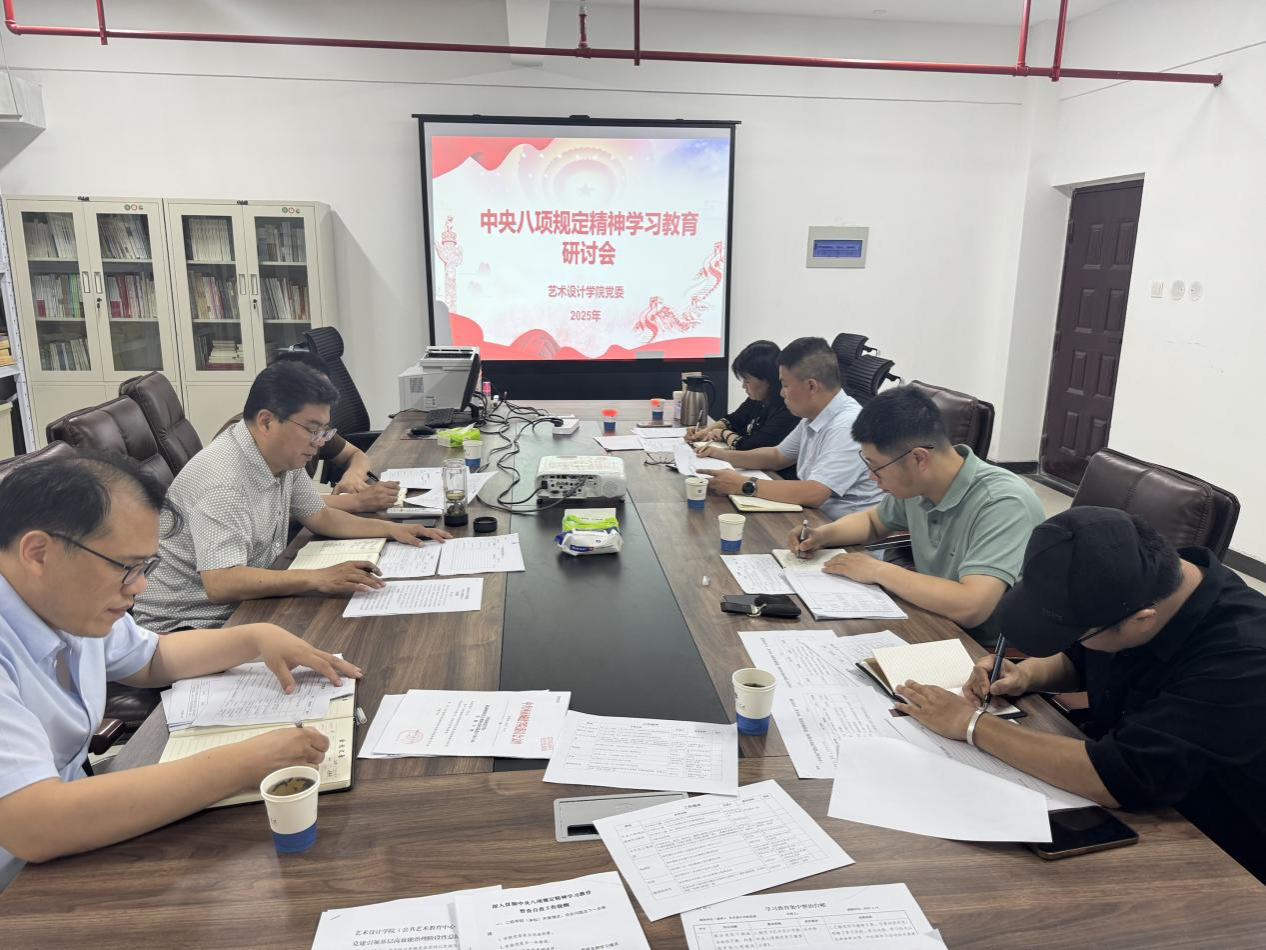 为积极响应党中央关于深入贯彻中央八项规定精神学习教育的号召,切实加强学校党风廉政建设,2025年6月13日,艺术设计学院召开党委会,专题学习中央八项规定相关内容,并针对违规吃喝问题进行了重点强调与深入研讨。会上,艺术设计学院党委书记马步伟带领领导班子再次深入学习了中央八项规定及其实施细则的具体内容。针对...