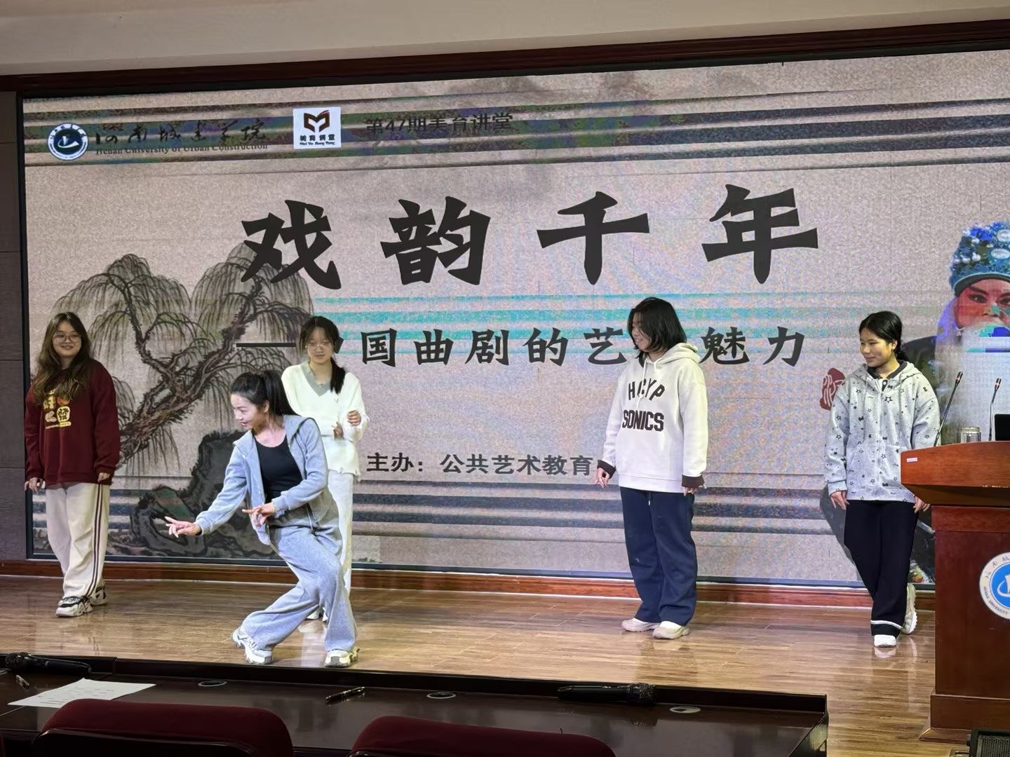 本次讲座不仅生动展现了河南曲剧唱、念、做、舞相融合的动态美学,更在校园中搭建起一座联通传统与当代的文化桥梁,为戏曲艺术在年轻群体中的传承与传播注入了鲜活动力。