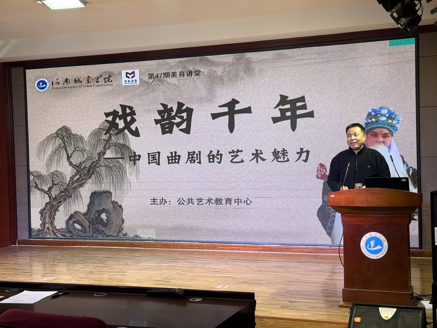 12月5日,我校第47期美育讲堂在四号楼音乐教室举行。本期讲堂以“戏韵千年——中国曲剧的艺术魅力”为主题,特邀国家一级演员、中国当代曲剧十大名角、平顶山戏剧研究中心副主任姚军良担任主讲嘉宾,公共艺术教育中心副主任刘培培、艺术教研室教师与百余名师生一起参加了讲座。