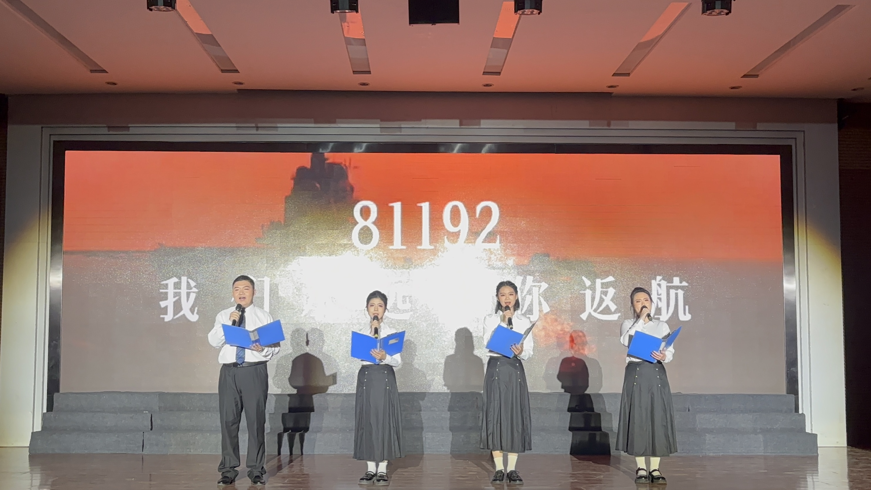 “英雄心·山河铭记”篇章以嘹亮歌声致敬英雄。混声合唱《南泥湾》《寸心》《万泉河水清又清》以恢弘的声场与细腻的情感,唱响了“自力更生、艰苦奋斗”的创业精神、军民同心的人民伟力以及红色娘子军的革命豪情。朗诵《请返航》《回家》通过声情并茂的演绎,深情呼唤英雄归来,让“山河不忘,英雄不朽”的信念深深烙印在每位观众心中。