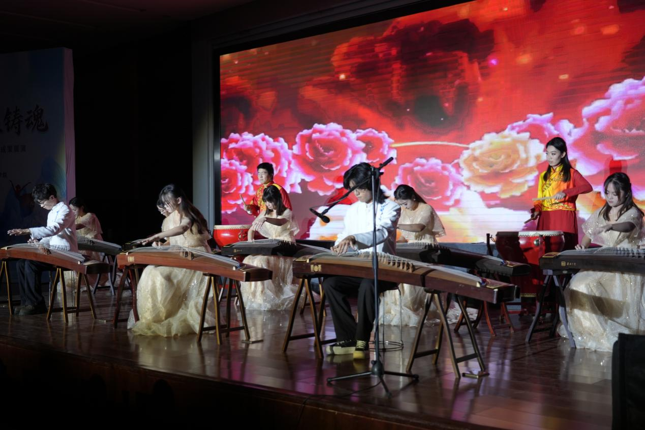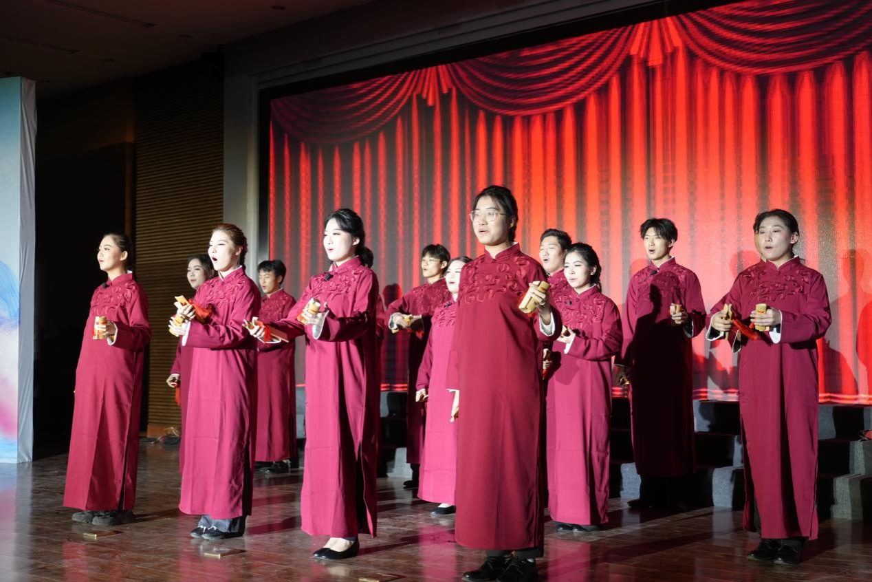 本次展演以古筝、合唱、朗诵、短剧、民谣、快板等多种艺术形式为载体,通过艺术审美体验与思想价值引领的同频共振,生动诠释了中华民族的精神图谱,展现了新时代青年与党同心、与国同行的坚定信念,为观众呈现了一场思想性与艺术性并重的文化盛宴。