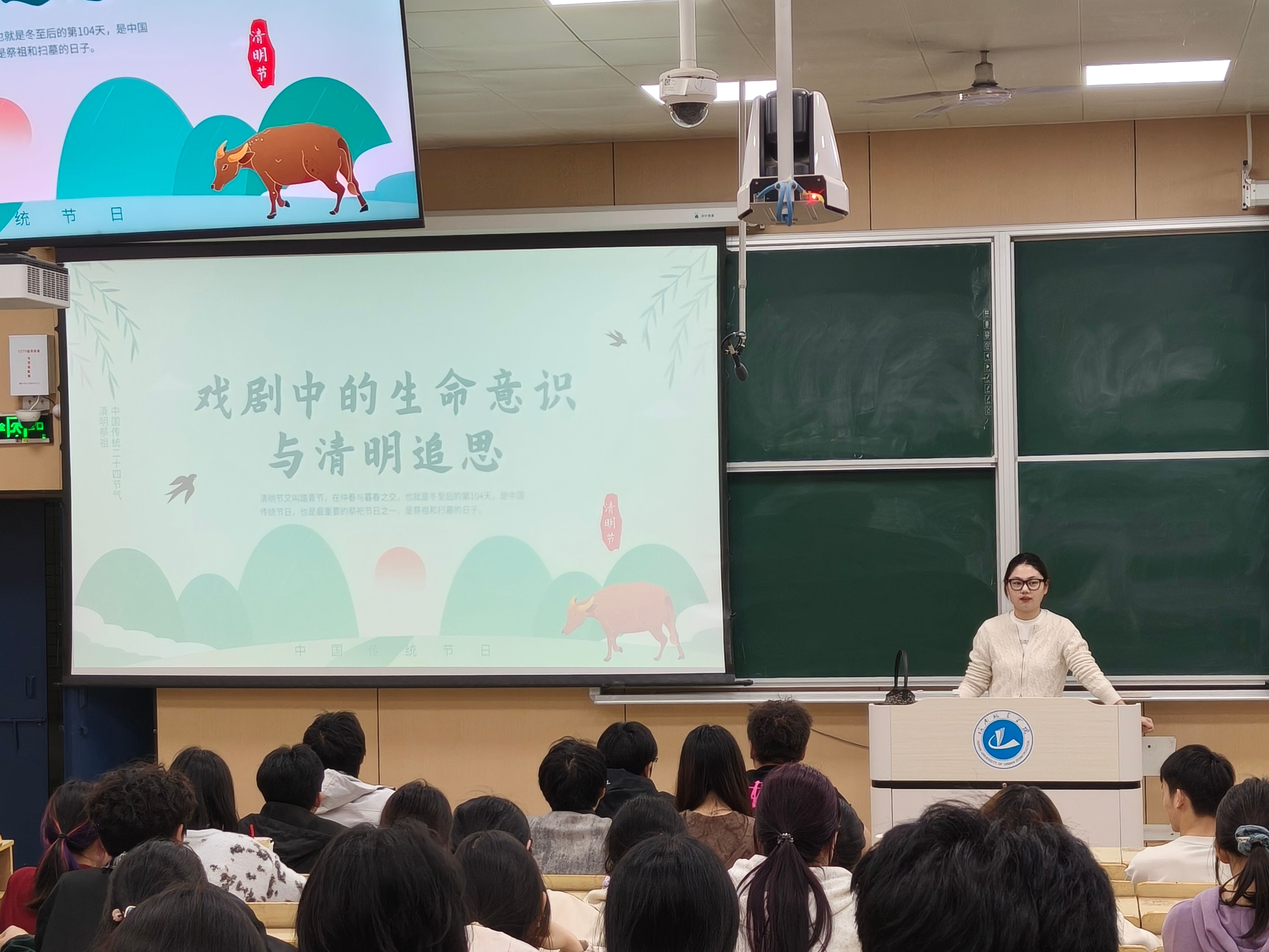 戏剧鉴赏课上,教师从清明节“慎终追远”的内涵出发,聚焦戏剧对生死命题的追问,通过分析舞台人物的命运抉择,与学生共同探讨“向死而生”的生命智慧。