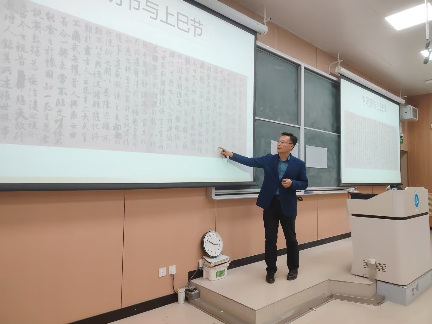 书法鉴赏课将传统节日与笔墨艺术深度融合。老师选取王羲之《兰亭集序》、杜牧《清明》及苏轼《寒食帖》,围绕清明与寒食节、上巳节的文化关联,引导学生透过笔墨感受古人对时序与人生的情思,领悟“节序如流、生命如寄”的哲学意蕴。